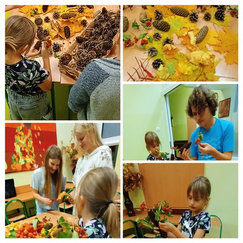Jesienny spacer okazał się nie tylko okazją do podziwiania barwnej przyrody, lecz także do spotkania ze sztuką i lokalną kulturą. Wychowankowie odwiedzili Galerię Zieloną, gdzie obejrzeli dwie interesujące wystawy: „Szymon Starkiewicz i jego dzieło życia” oraz „Agata Tusień – W kuchni moje miejsce” .
