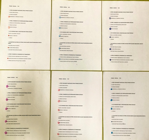 Następnie wychowankowie uczestniczyli w krótkim quizie utrwalającym zdobytą wiedzę. Kolejnym etapem było wypisywanie na kartkach wybranych praw, które uznali za najważniejsze dla siebie. Na zakończenie wychowankowie wykonali prace plastyczne przedstawiające prawa dziecka. Zajęcia pozwoliły wychowankom lepiej zrozumieć, że każde dziecko ma prawo do bezpieczeństwa, nauki, zabawy, szacunku i wyrażania swoich uczuć.